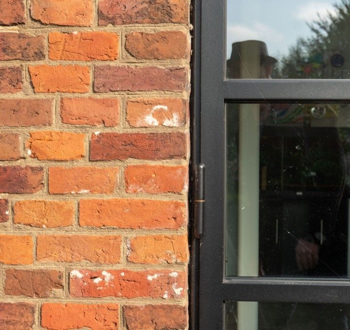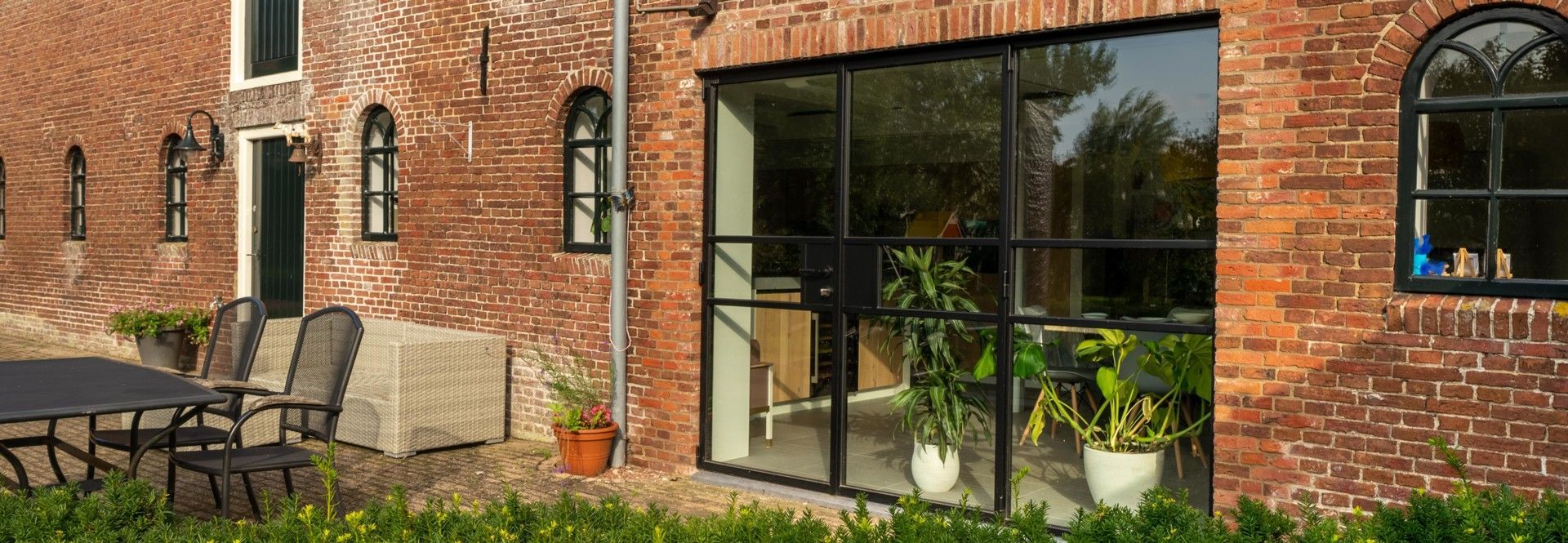 Dit monumentale pand was toe aan een keukenrenovatie, de aanwezige keuken was gedateerd en een rechtstreekse doorloop naar de tuin was niet aanwezig. Geheel in de trend van de woning is er gekozen om een stalen pui aan te brengen, hiervoor moest echter wel een zwaar stalen portaal ingebracht worden om de constructie aan te kunnen passen. Inpandig zijn er enkele wanden verwijderd en is de keukenindeling aangepast, de vloer is voorzien van grote plavuizen zodat er een schitterend lichte woonkeuken is ontstaan.