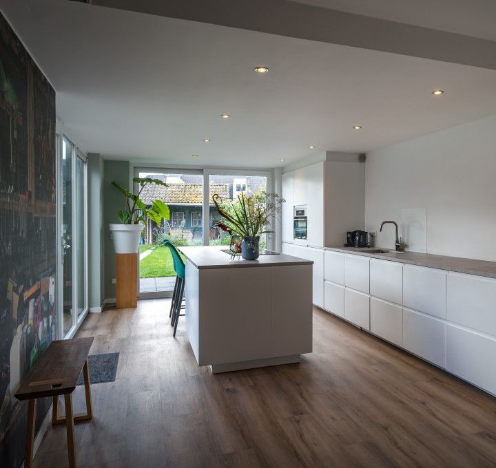 Deze relatief kleine woning is grootschalig gerenoveerd, zo is onder andere de badkamer verplaatst van de beganegrond naar de verdieping door een slaapkamer op te offerten. Een imposante trap in het centrum van de woning is vervangen door een bescheiden variant op een logische locatie om meer beweegruimte te creëren, hierdoor is er een ruimte woon- en eetkamer ontstaan. Door de bestaande berging bij de woning te betrekken door de scheidingswand te verwijderen is er ruimte gekomen voor een grote keuken. In beide gevels zijn kozijnen geplaatst met grote glasoppervlakken zodat er een licht en geheel is ontstaan. Halverwege de woning is de "oude" woning nog zichtbaar met het schoon metselwerk en de balklaag in het zicht.