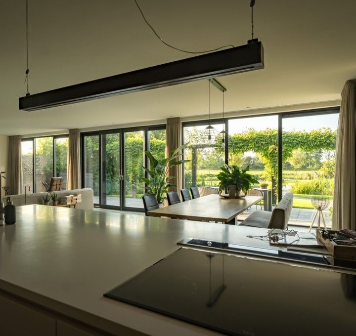 De verouderde basiswoning moest compleet gerenoveerd worden om bewoning mogelijk te maken, in dezelfde fase is er een zeer ruime uitbreiding achter de woning geplaatst. Met vrij uitzicht aan de achterzijde is er gekozen om deze gevel geheel uit te voeren in kunststof kozijnen, beide zijgevels zijn blind uitgevoerd met relatief onderhoudsarme kunststof gevelbekleding. Met behulp van enkele stalen portaalcostructies is er een geheel gecreëerd tussen de basiswoning en de moderne uitbreiding.